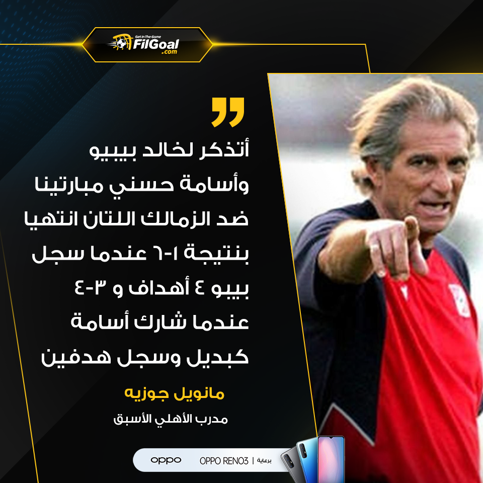 في الجول مانويل جوزيه عبر قناة الأهلي أتذكر لخالد بيبو مباراة 6 1 عندما سجل 4 أهداف ولأسامة حسني مباراة 4 3 عندما شارك كبديل وسجل هدفين